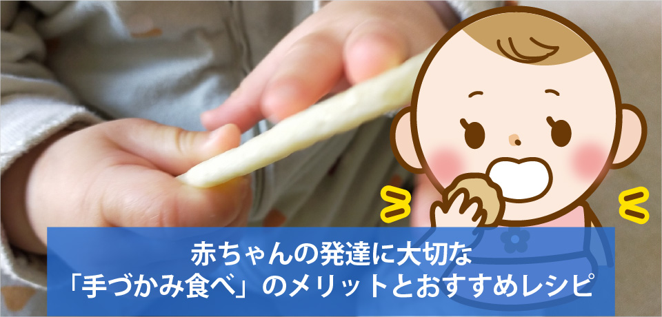 離乳食時期の赤ちゃんの多くは、なんでも手でつかんで食べようとする段階があります。