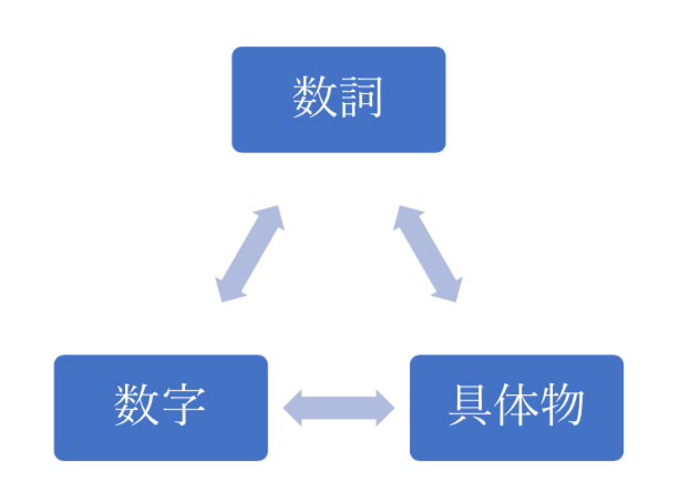 これらの3つは、それぞれ別の感覚を使って脳で統合されているのです。この感覚を統合する機能に弱さがあると、のちに小学校で学ぶ「計算」や「文章題」は理解できなくなります。すなわち、「数詞」「数字」「具体物」の相互関係の理解はのちの算数、数学学習の基礎ということになるわけです。