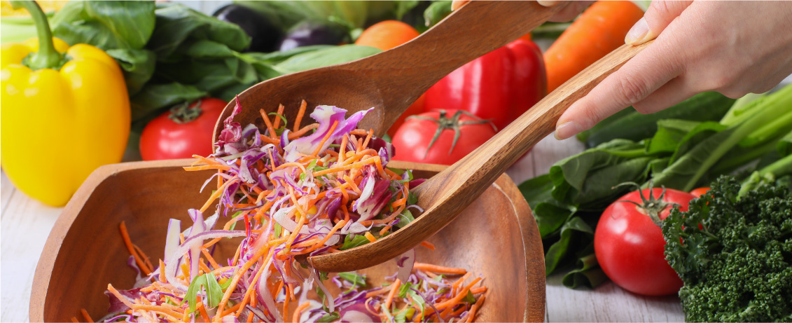 腸内環境を整えるためには、食物繊維が必要です。食物繊維は「善玉菌を増やす」「排便を促す」などの作用があります。腸内環境を整えて、免疫細胞にしっかり働いてもらいましょう。 食物繊維は野菜類や穀類、豆類、きのこ、果実類に多く含まれますので、毎食両手に山盛りの野菜を食べるようにしましょう。