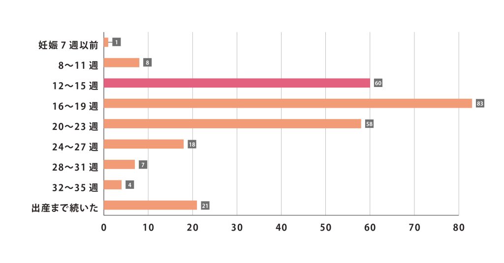 「母子健康管理ガイドブック」に書かれている「つわりが終わる時期」が、アンケート調査で「最も多い回答結果と少し違う」と感じたのはこの点でした。