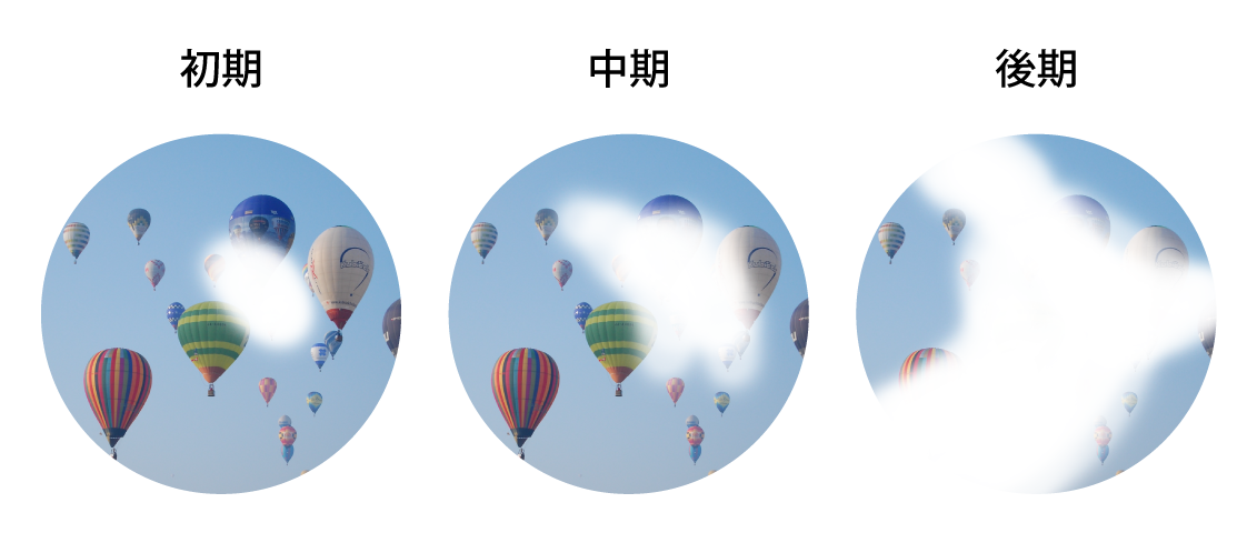 見え方が悪くなれば、さすがに気付くと思われる方は多いですが、実際には自覚症状がでてから受診されるケースは少なく、他の理由で眼科を受診した際に偶然見つかる場合や、人間ドックや眼科検診ではじめて見つかる場合が多いです。