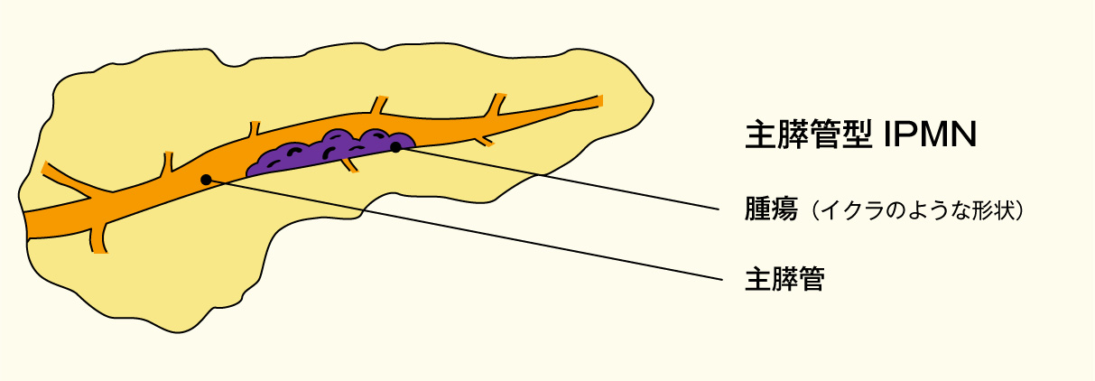 主膵管型IPMNは癌になる可能性が高いため早めの手術が必要です。