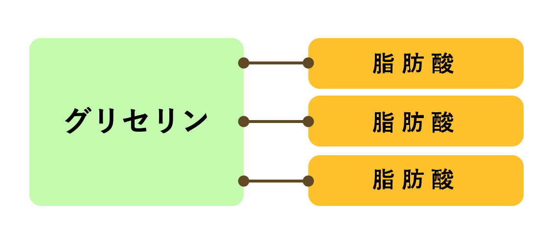 以下の図はトリアシルグリセロール(TG)と呼ばれ、中性脂肪として体内に蓄えられているものです。