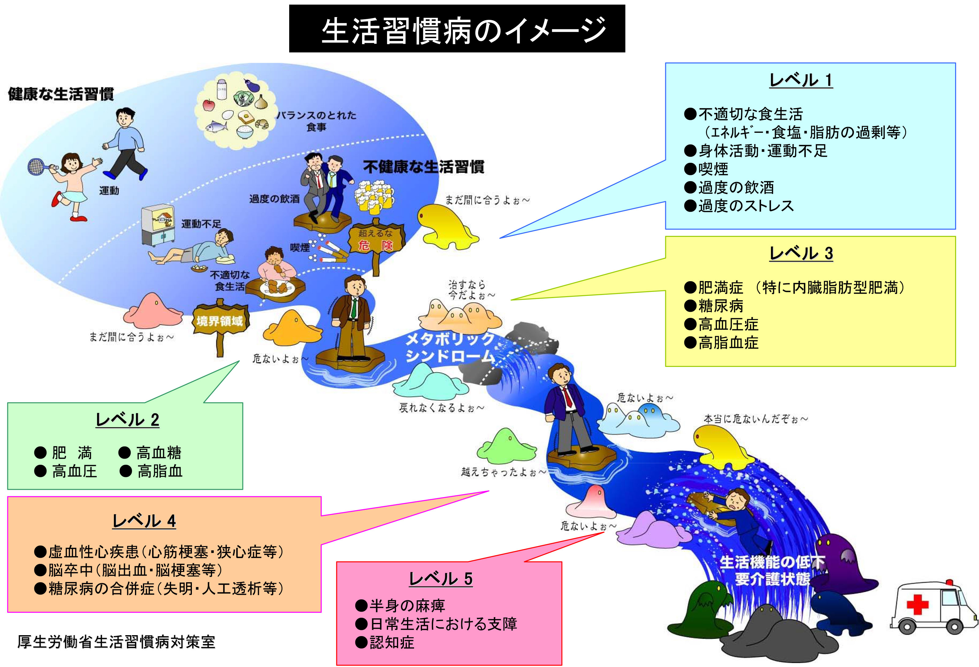 ビール腹は単なる肥満だけではなく、不健康な生活習慣が招いた状況であり、このままに放置することは脳卒中や心疾患など死や、日常生活に支障をきたすような状況に直結した疾患への入り口となります。
