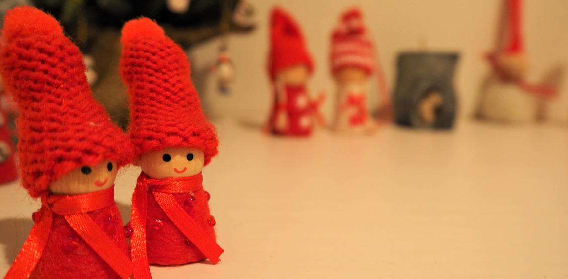 背景にはツリーやトナカイなどがプリントされたタペストリー風の布を敷いたり、クリスマスカラーの布にモールなどで飾り付けをしたりするのがSNSでは人気です。