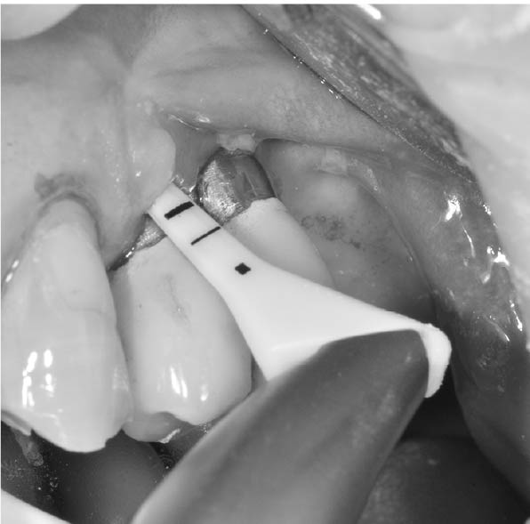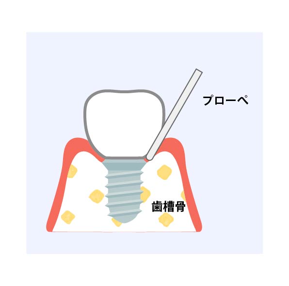 インプラントの周りを専用の器具(プローべ)で軽くなぞるように触ってみて歯茎から出血するか調べる