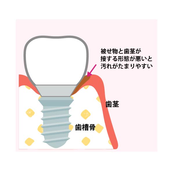 インプラントと被せ物はネジで留めてあるので、外して被せ物の周りの汚れを洗浄できます。
