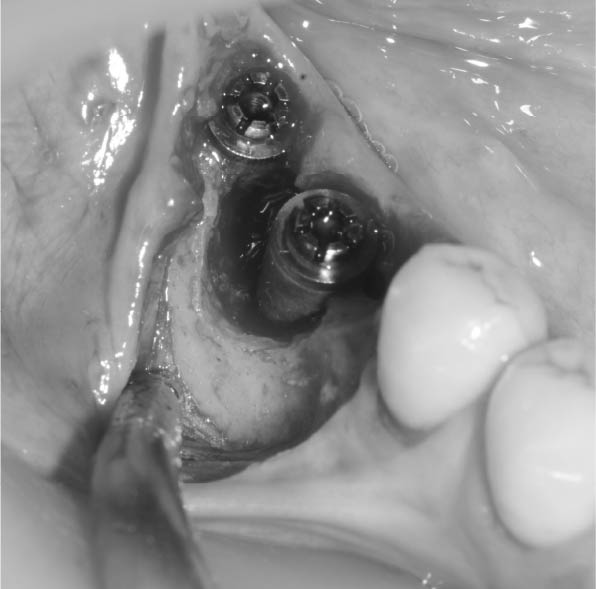 骨の欠損の進行次第ではインプラントを撤去し、骨の治癒を待った後、再度インプラントを埋入する