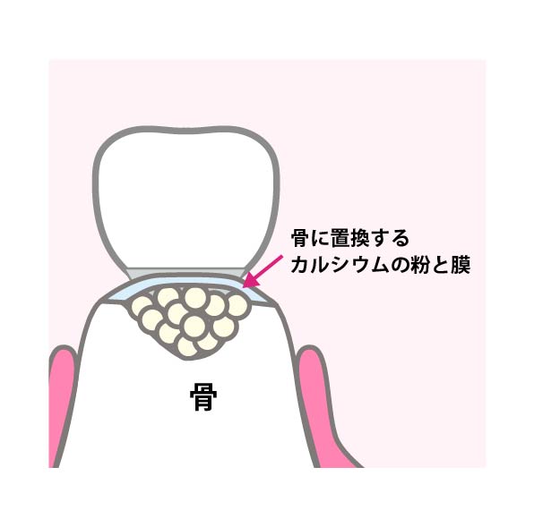 骨に置換するカルシウムを主成分とする粉を詰め、膜で覆う