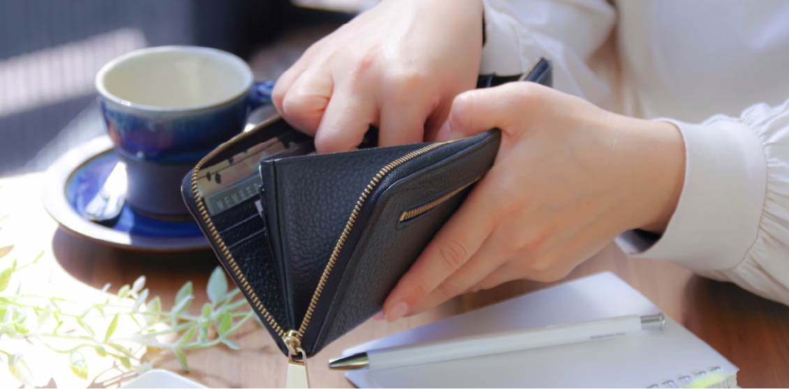 二つ折り財布はコンパクトで小型のバッグやポケットにも入りやすく、気軽に持ち歩けるのがメリット。