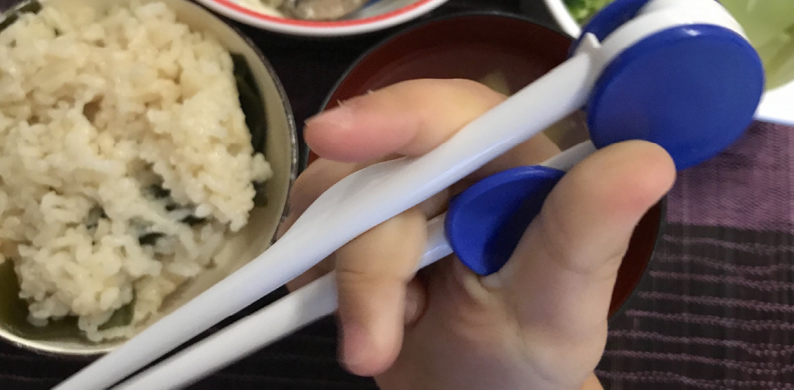 なかなか感覚がつかめないときは、正しい位置に指を通すリングがついた箸や、上部がつながっていて落としにくい箸なども売られています。