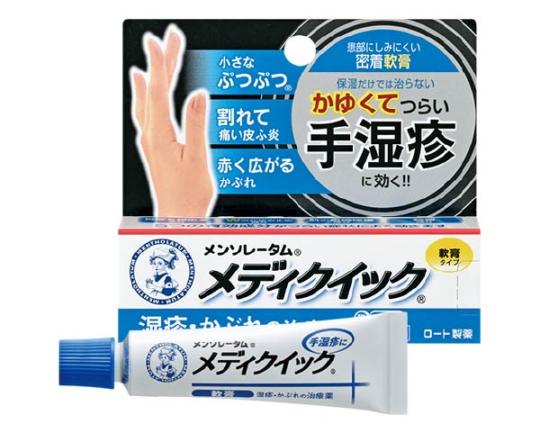 手湿疹用のメディクイックには、クリームタイプと軟膏タイプとがあります。ベタつきにくいほうがいい方はクリーム、皮膚に優しいものがいい方は軟膏がおすすめです。メディクイックには、炎症を抑えるステロイドと殺菌成分、かゆみ止めや組織の修復成分などが配合されています。