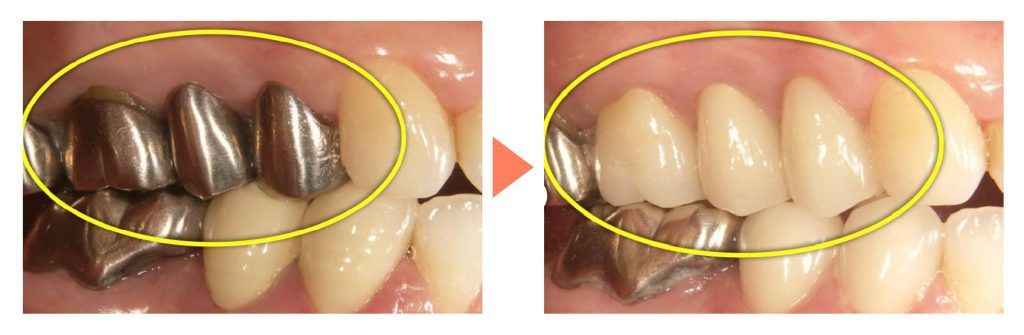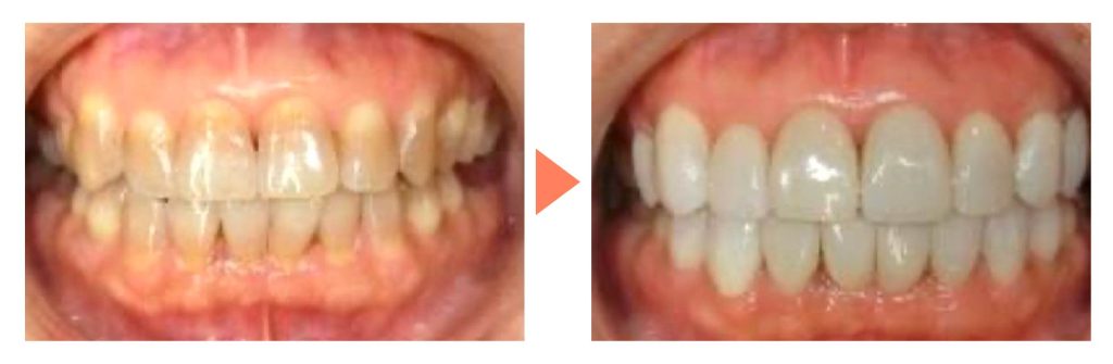 セラミック製の被せ物を装着する治療法です。重症度の高い歯の変色はもちろん、強い力がかかる奥歯にも適応できます。また、セラミッククラウンなら歯の形や大きさ、ちょっとした歯並びの乱れも同時に改善可能です。