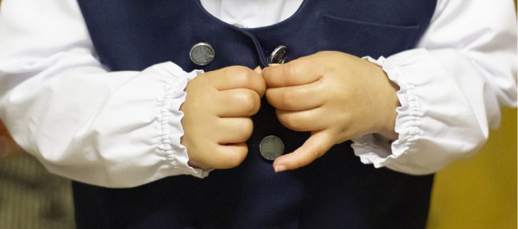3歳頃になると、服の前後や裏表を判断できるようになり、ボタンの留め外しもできる子が増えてきます。