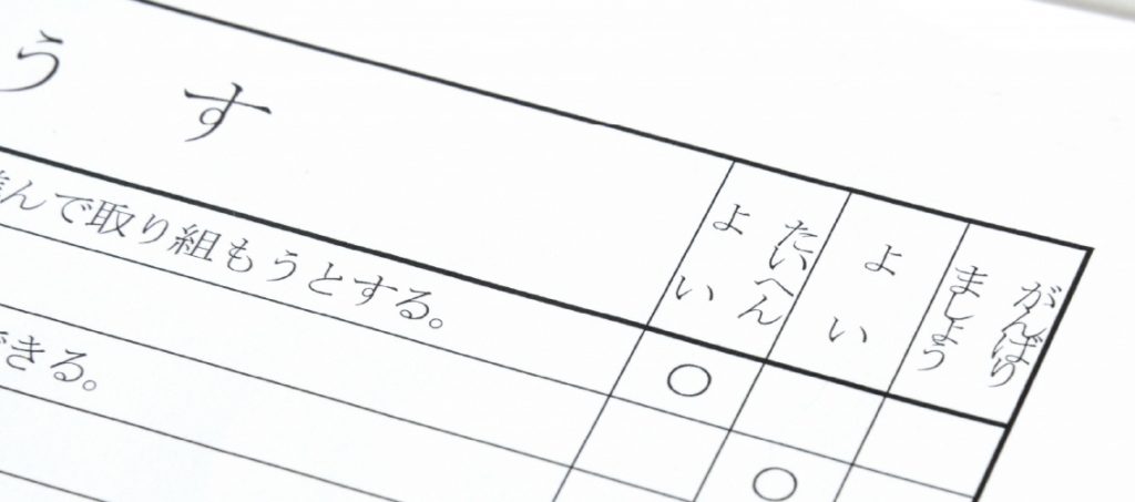 小学校の通知表は、公立・私立や地域によって多少異なりますが、おもに「◎/○/△」あるいは「A/B/C」など3段階で評価されます。中学校は1~5の5段階評価が多いですね。