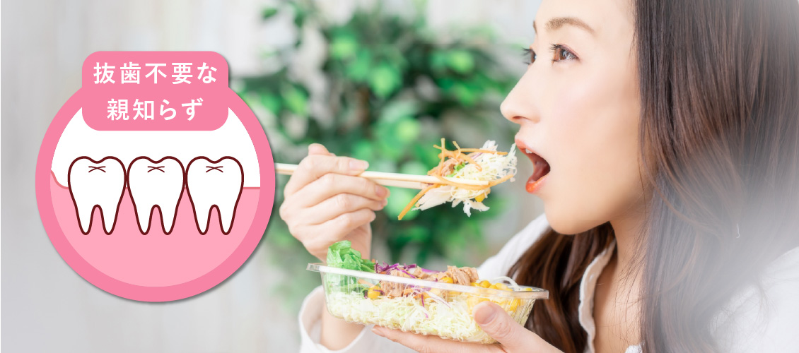 さて、親知らずを抜歯した方が良い症状についてはご理解いただけたかと思います。そこでもうひとつ知っておいていただきたいのが抜歯をしなくても良い親知らずについてです。上述した症状が現れておらず、真っすぐ正常に生えている親知らずは、基本的に抜歯をする必要はありません。抜歯も少なからずリスクを伴うことから、必要性が低い場合は何もせず経過を見ていった方が良いでしょう。しかも、親知らずを抜かずに残しておけば、将来、歯を失った時の移植歯やブリッジの支台歯として活用することも可能となります。その選択肢を持っていることは、患者さんにとって極めて大きなメリットとなることでしょう。