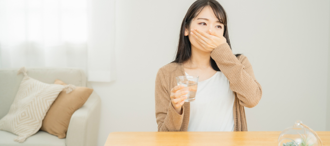唾液が少なくなってお口の中が乾燥すると、口臭が発生しやすくなります。そのため、唾液の分泌を促すためにも水分をこまめに摂るようにしましょう。