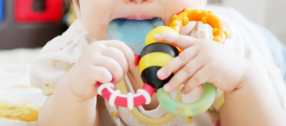 これは、歯が生えてくるときの歯ぐきのムズムズを解消するためと考えられています。歯が生えてきそうなようす(歯ぐきが固くなってくる、よだれが増えるなど)が見られたら、早めに歯固めのおもちゃなどを用意しておくと良いですね。