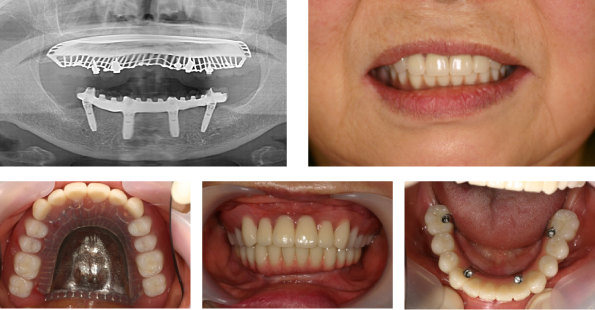 オールオン4(All on 4®︎)は、総入れ歯をお使いの方や多くの歯をなくした方に、最小4本のインプラントで12本の連結した歯を手術当日に装着し、速やかに見た目と噛み合わせ機能を回復する治療法です。