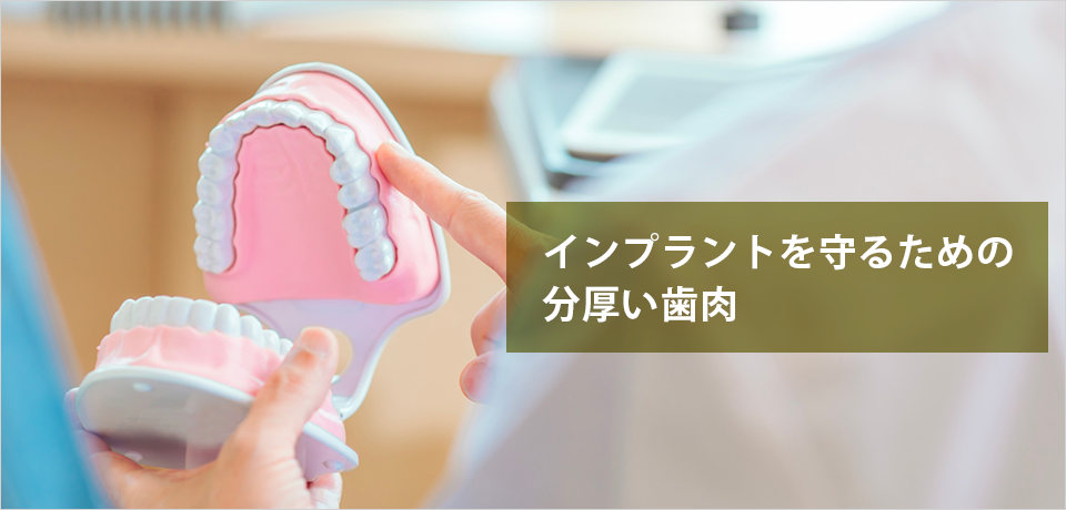 天然歯においても歯を支える骨を歯周病から守る為には分厚い歯肉が必要であり、これが骨を守る鎧になるのです。
