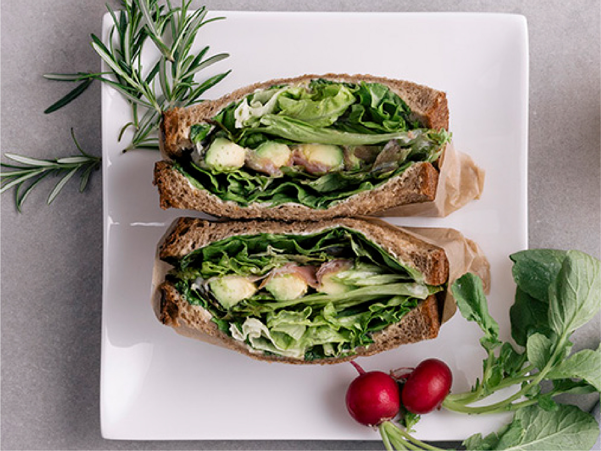 味付けは、国産大豆100%の豆腐で作った自家製からしマヨネーズ。通常の卵やたっぷりの油を使ったマヨネーズとは異なり、アボカドや生ハム、それぞれの素材の味を引き立てるあっさりとした味わいですが、ピリッとしたからしの辛みがアクセントの大人な向けサンドイッチとなっています。体に優しいヘルシーな朝ご飯を食べて、健康的な1日のスタートを切りましょう。