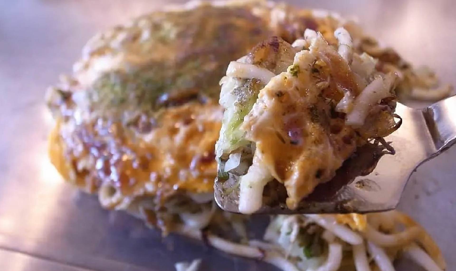 広島のお好み焼きと言えば、中華そばのような麺入りが一般的ですが、「西国街道お好みカフェ あたご屋」では糖質が気になる方向けに、広島産の糸こんにゃくを使用したお好み焼き「あたご焼」を提供。ヘルシーで、いつものお好み焼きとは異なるこんにゃく独特の食感も楽しいお好み焼きです。