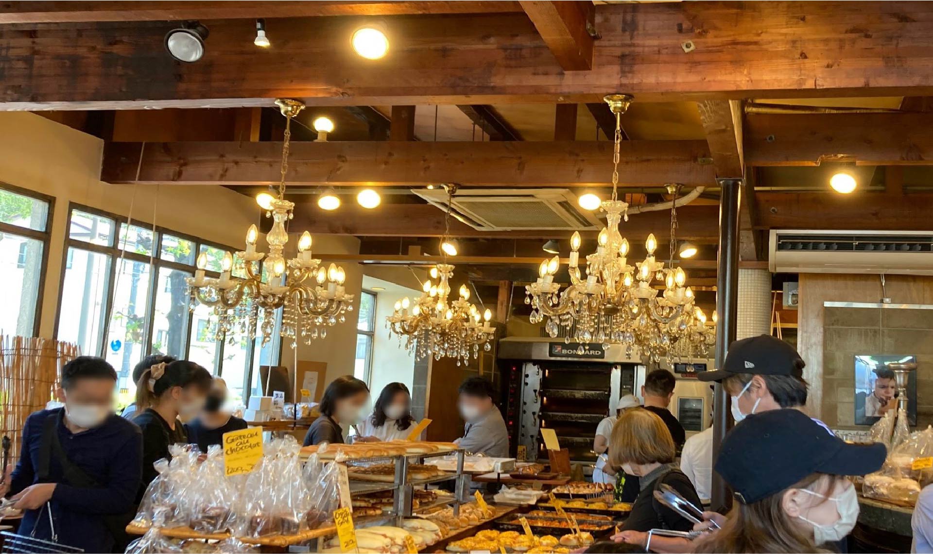 大きなシャンデリアのある店内には、たくさんのパンが所せましと並んでいます。手書きのPOPや陳列の仕方はオシャレで個性的。魔法がかけられたかのように、ついつい手に取ってしまいます。