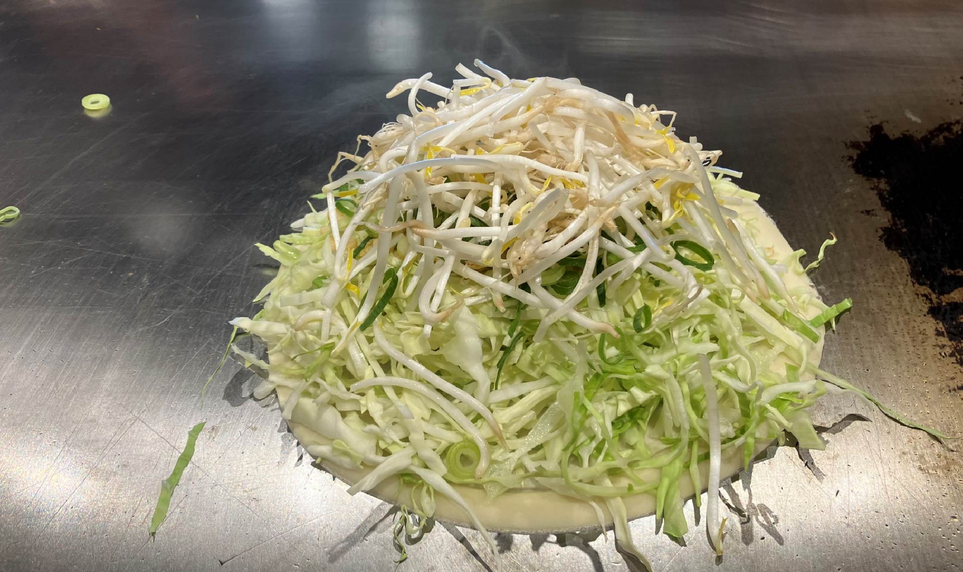 自分で作るお好み焼きの味は格別です。野菜の甘みが感じられ、出汁のうまみがしっかり感じられる、おいしいお好み焼きが完成しました。