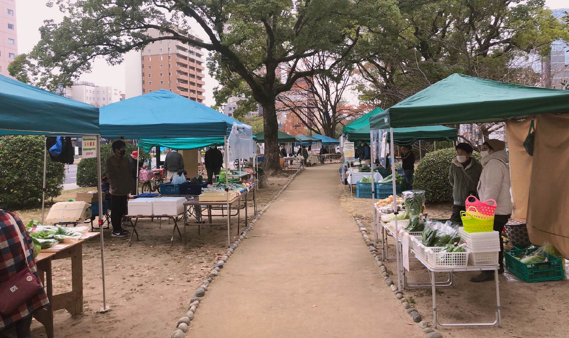 ひろしま朝市は「広島市農業振興センター」が開催する、広島の中心街で唯一行われている朝市です。広島市農業振興センターは広島市内の農家の活動のサポートや研究、推進につとめる団体ですが、農家や漁業、林業を営む広島の一次産業を支える人たちと消費者との交流の場として朝市を行っています。