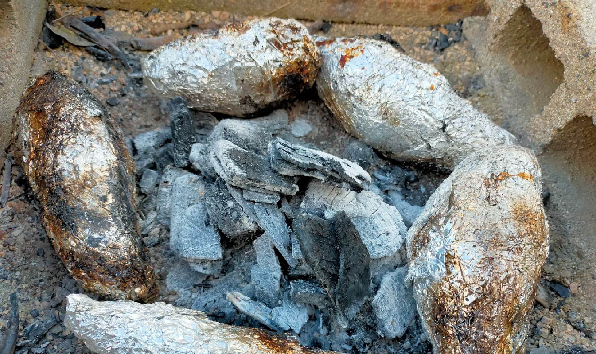 アルミホイルが黒っぽくなってきて、炭の白いススもついてくると食べごろのサイン。竹串がスーッと通れば完成です!ここまでにかかる時間は、火加減やイモの大きさにもよりますが、45分から1時間です。もっと弱火で1時間以上かけて、じっくり焼くのが好みの人もいます。
