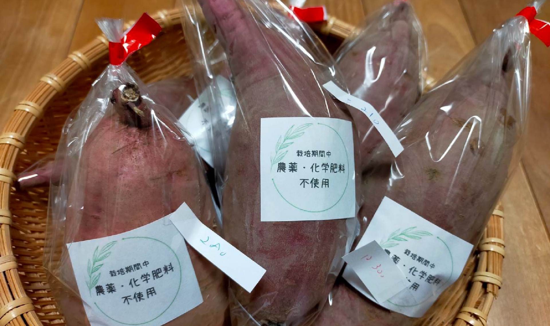 さて、試食が終わったら、サツマイモの販売に向けて準備です。無農薬・無化学肥料栽培で、味もおいしいサツマイモなので、自信をもって販売することができます。