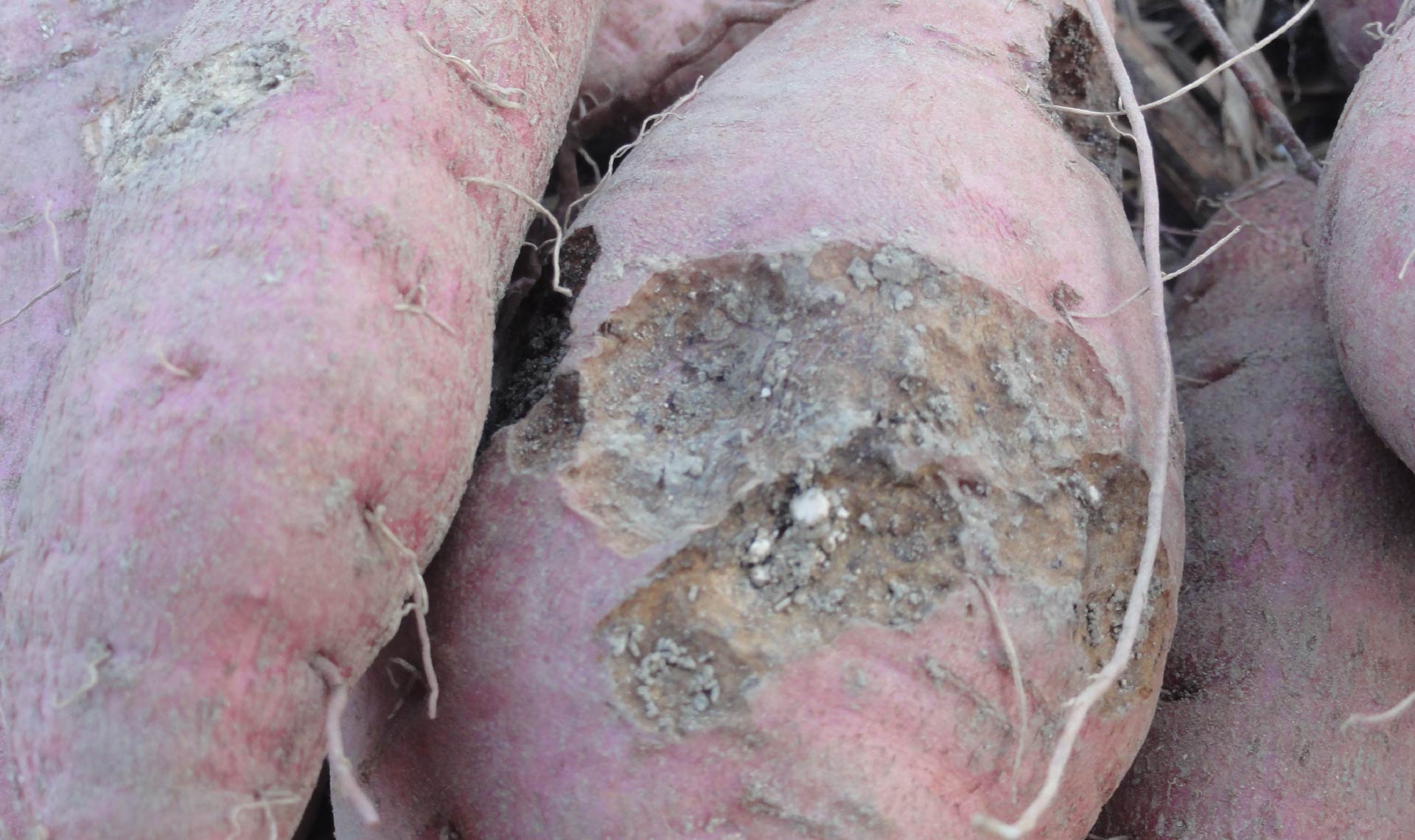 無農薬栽培なので、この写真のように、コガネムシに食べられて虫食いになっている芋も多かったです。食べるとおいしい芋なので、こんな傷も、本来はご愛きょうなのです。