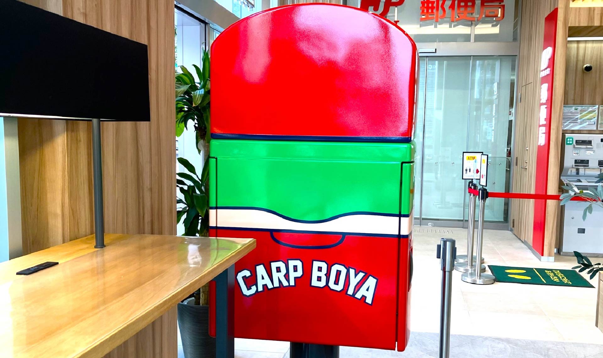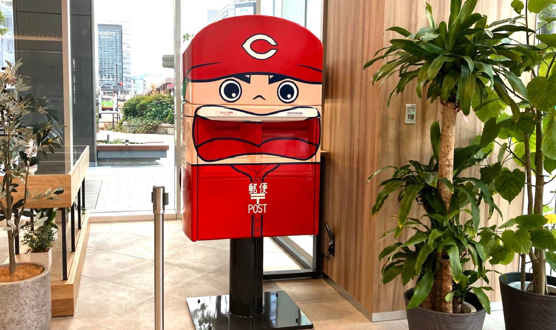 2022年に広島JPビルディング1階に開局した「広島JPビル郵便局」。そこに広島東洋カープのマスコットキャラクター「カープ坊や」をモチーフにした特殊ポストが設置されています。