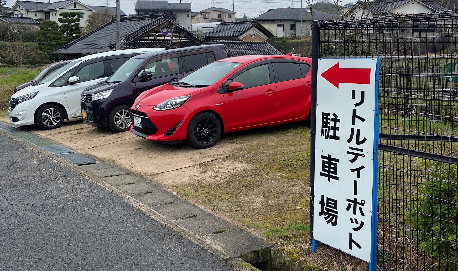 さらに左手、未舗装の小道に進入しましょう。「ええええ…本当にここ?」と不安になりますが、大丈夫。奥に10台ほど、駐車可能スペースが広がっています。未舗装の進入路は車のフロントをこすりやすいので、運転は慎重に。