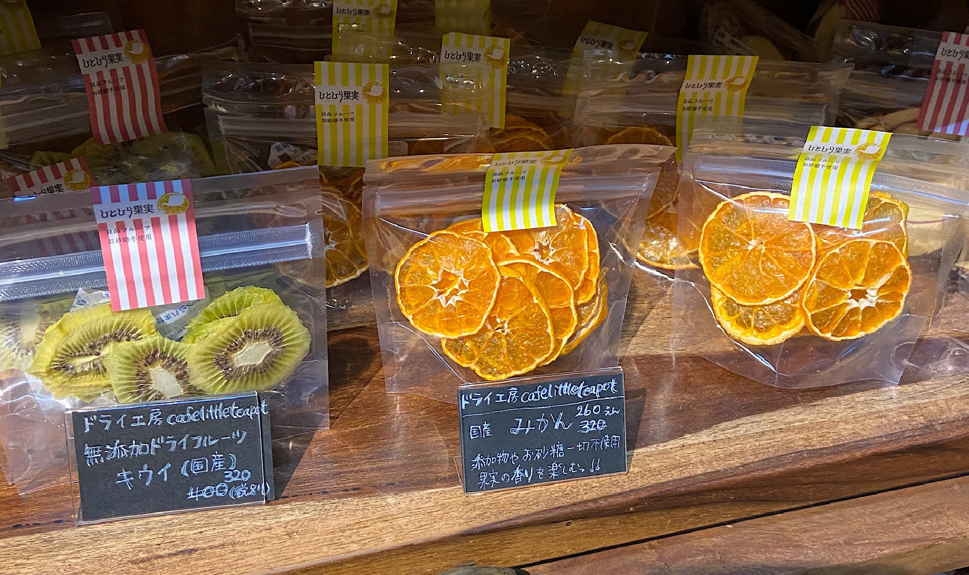 ていねいに手作りされた無添加のドライフルーツは、おみやげにもぴったりですね。