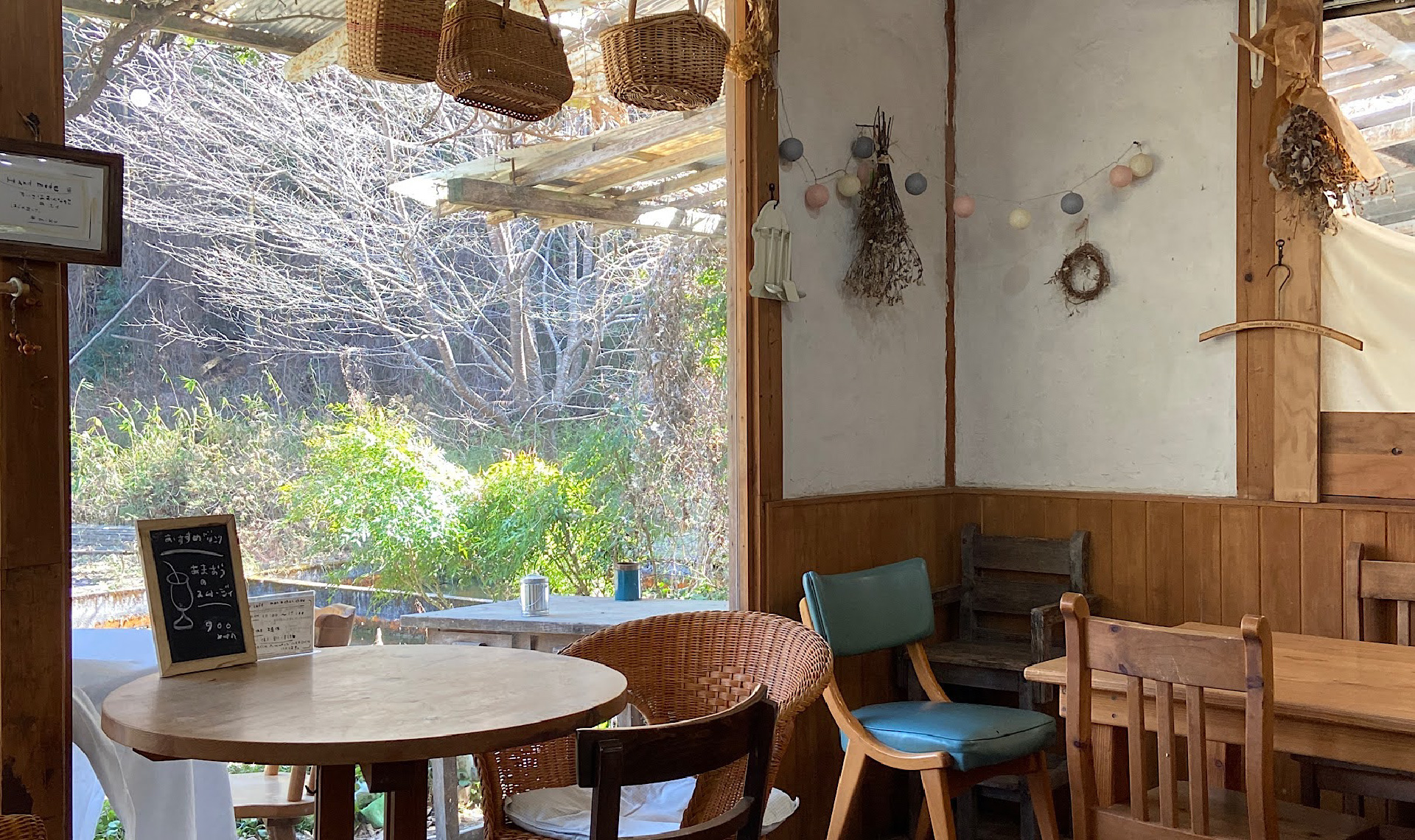 奥畑エリアの森の奥にたたずむカフェは古民家を洋風にアレンジした可愛いしつらえ。すぐ横を奥畑川が流れ、緑いっぱいの環境です。桜の木がたくさんあって開花時にまた訪れたい!筆者が訪問した時は、カフェ裏手の梅の花が満開で、辺り一面にいい香りが漂っていました。