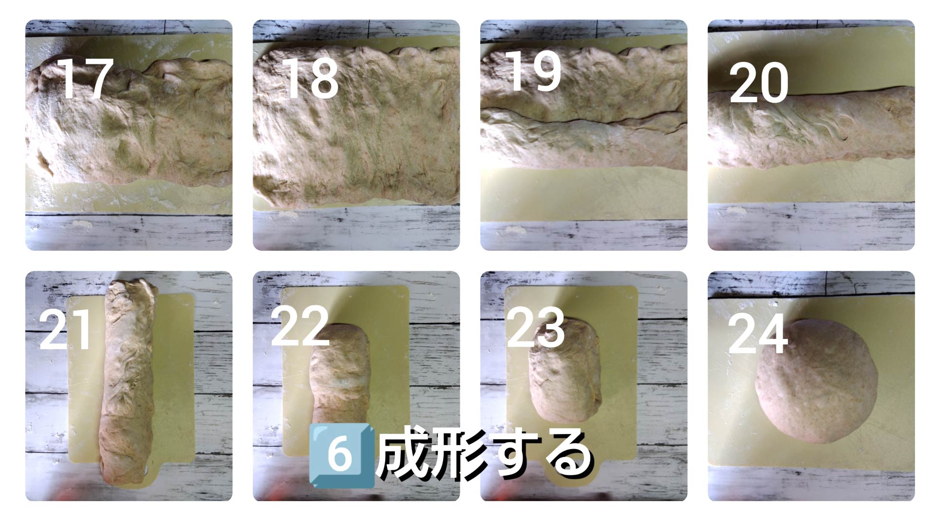 6の成形の手順は、写真23まで同じです。あとは、24のように丸くせず、楕円形に成形します。