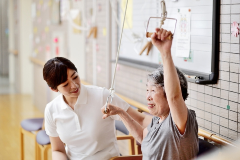 対象が高齢者と限局されるので、老化により日常生活動作が低下してしまわないよう、機能維持を目的としたリハビリテーションを提供します。