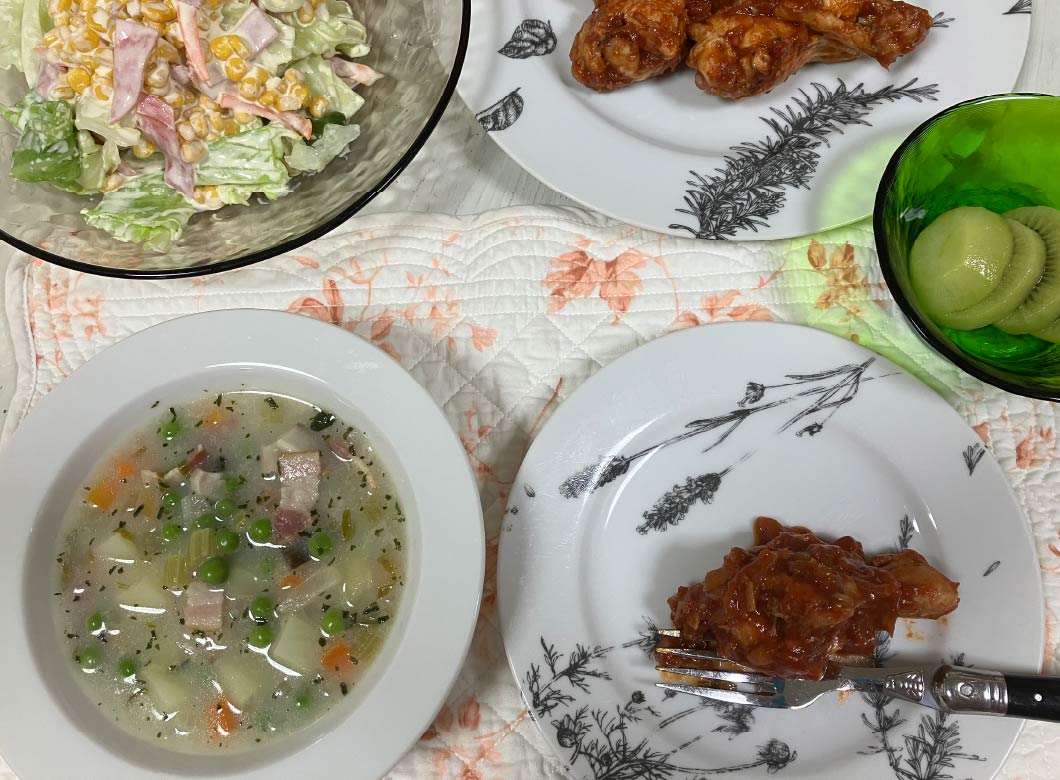 物語の中では、スープの半量をミキサーにかけてピューレ状にし、鍋に戻す方法がありましたが、後片付けの手間を省くため、その工程は省略しました。これでシンプルに美味しいスープが完成します。