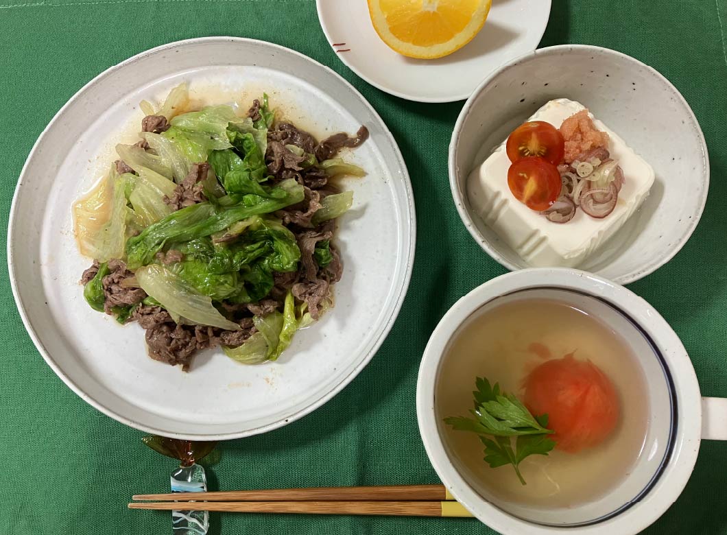 豚肉は下味をつけませんでした。2025年の厚労省の推奨する食塩摂取量は6g/日未満が望ましいとされています。表面に味をつけるだけでも満足感はあると思いますので、できるだけ薄味に慣れてください。