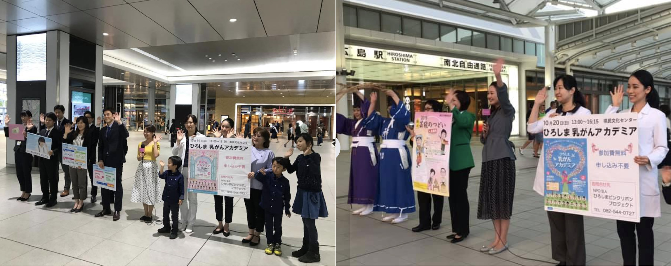 ひろしまピンクリボンプロジェクトの活動:広島乳がんアカデミアを、広島テレビの街角伝言板で宣伝