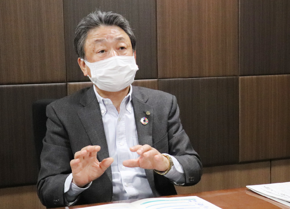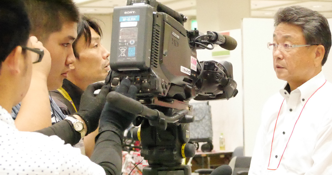 ブロック長として取材を受ける矢野さん