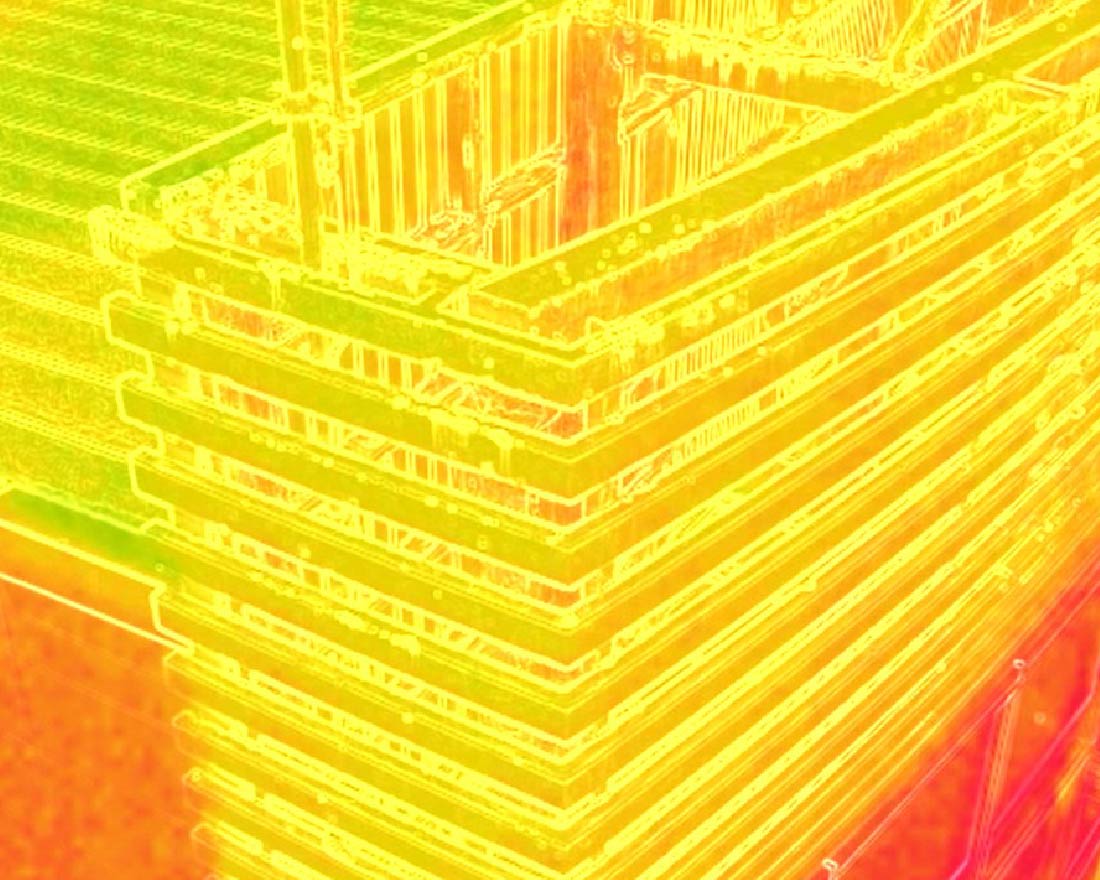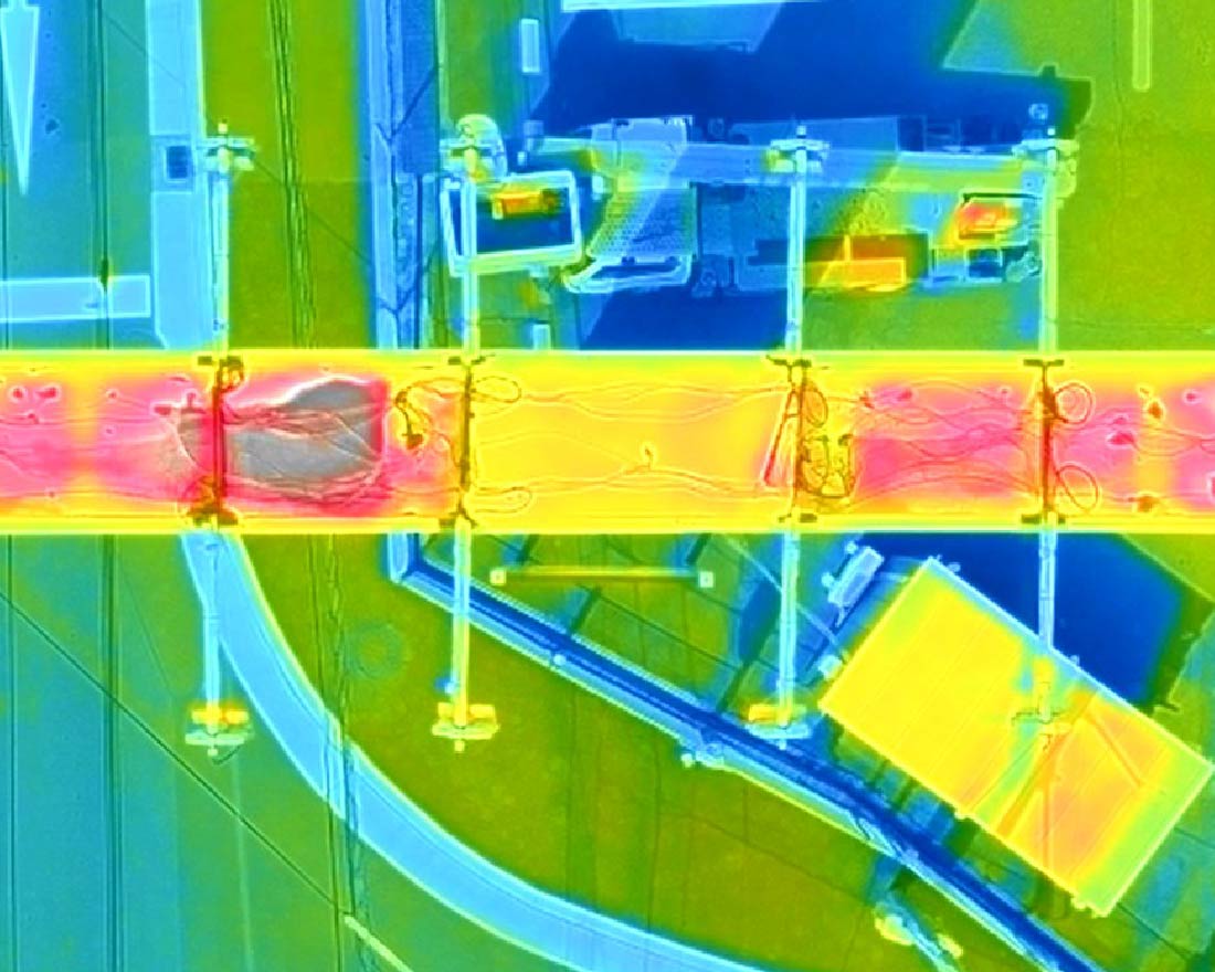 また、サビは塗装面より熱量を持ちやすく、塗膜劣化箇所は適正な塗膜面より温度が高くなるという点を活かして、ドローンの赤外線調査にて、破損・変形・サビ・歪み等の診断が可能となります。加えて、チョーキング現象・細かなひび割れ・漏電・雨漏り箇所・タイル外壁の浮き等、赤外線を利用することでその他の異常も発見できるという利点があります。