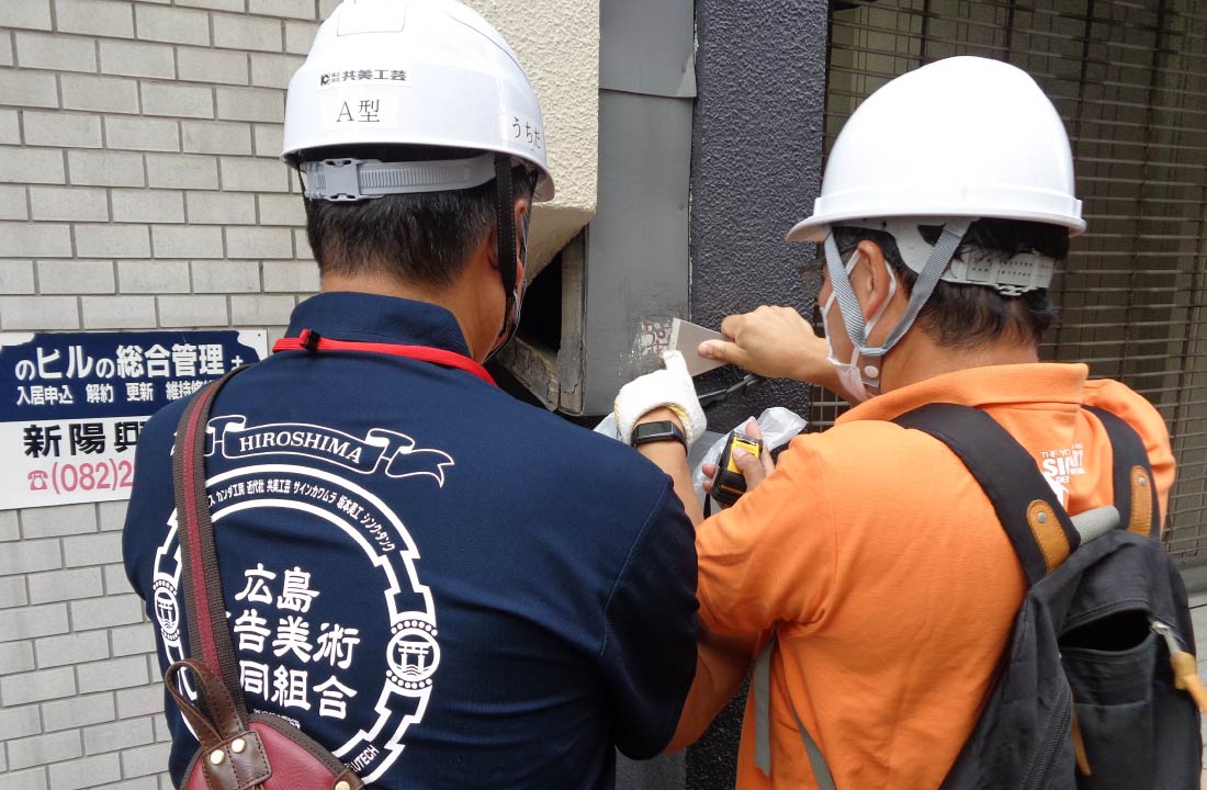 街を元気づける看板が、街づくりにそぐわないものであったり、安全を損なうものであったりすることは、事業者の社会的責任として回避すべき課題だと考えています。そのために組合にて屋外広告物点検技能講習などを実施し、当組合の専門知識を幅広い自治体や企業、社会団体に活用していただけるように働きかけています。2020年には、中国地方では初となる良好な景観形成と屋外広告物の安全確保のための連携協定を廿日市市と締結しました。