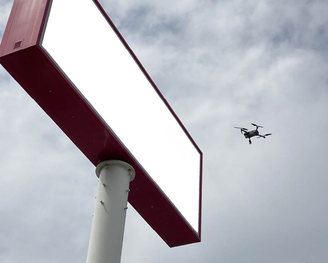 新しい技術を活かした取り組みとしては、赤外線搭載ドローンを使った屋外広告物点検事前調査の提案にも力を入れています。