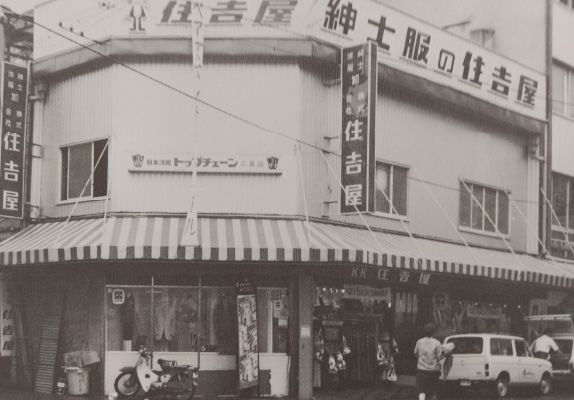 「住吉屋」は、祖母の実家にあった古文書に残っていた屋号なんです。江戸時代のもので、詳細は不明なのですが何か商いをしていたんでしょうね。その系図からたどると9代目に当たる祖父が商売を始める時にその屋号を使ったようです。あつらえ職人をしていたのですが、原爆で全て焼けてしまって、父が戦後ゼロからスタート。的場町の繊維問屋街で紳士既製服の卸を始めました。庶民の服も本格的に着物から洋服に変わる黎明期。物がない時代だけれど、仕事をするためにはスーツを必要とする人も多く、飛ぶように売れたそうです。