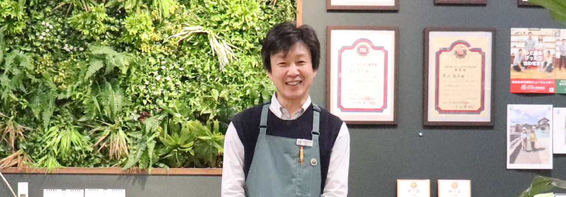 「快足屋」には足と靴のことを知り尽くしたシューフィッターが常駐。「KAISOKUYAスーパーバイザー」の渡山さんは、さらに上級資格を持つ〝バチェラー〟