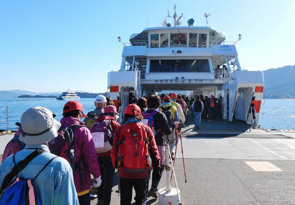 歩くことの素晴らしさを多くの人に伝えるために、また当店で足に合った靴と出会ってくださったお客様にどんどん歩くことの楽しさを経験していただくために、毎月「楽ちんウォーク」というイベントを開催しています。広島市近郊で10km程度。太田川の河川敷を歩いたり、宮島へ渡ったり、紅葉の錦帯橋を眺めたり。予約不要、参加費200円という気軽さで、多くの方々に楽しんでいただいています。