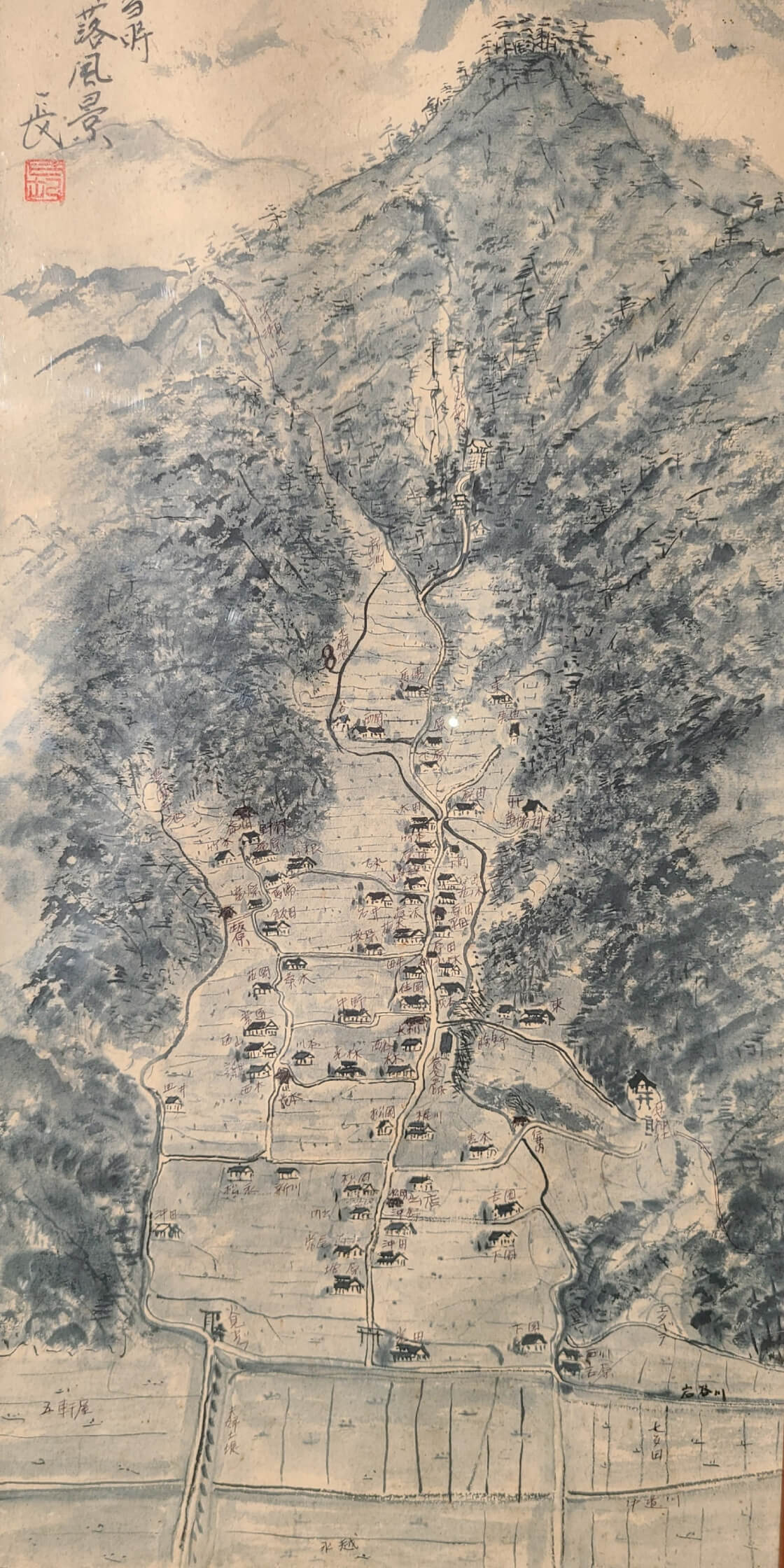 毘沙門天の参道に沿って開けた谷沿いの集落が岩谷地区です。今は緑井三丁目という地名に統合されましたが、この辺りは「中組」「八敷」「大下」「日吉」「松原」「上組」といった集落名が残る古くからの農村地域で「岩谷」はその一つ。岩谷神楽は、地区の氏神である「石屋(いしや)神社」への奉納神楽です。「岩谷」と「石屋」、今では漢字も読み方も異なりますが、元は同じ「いわや」だったのではないでしょうか。