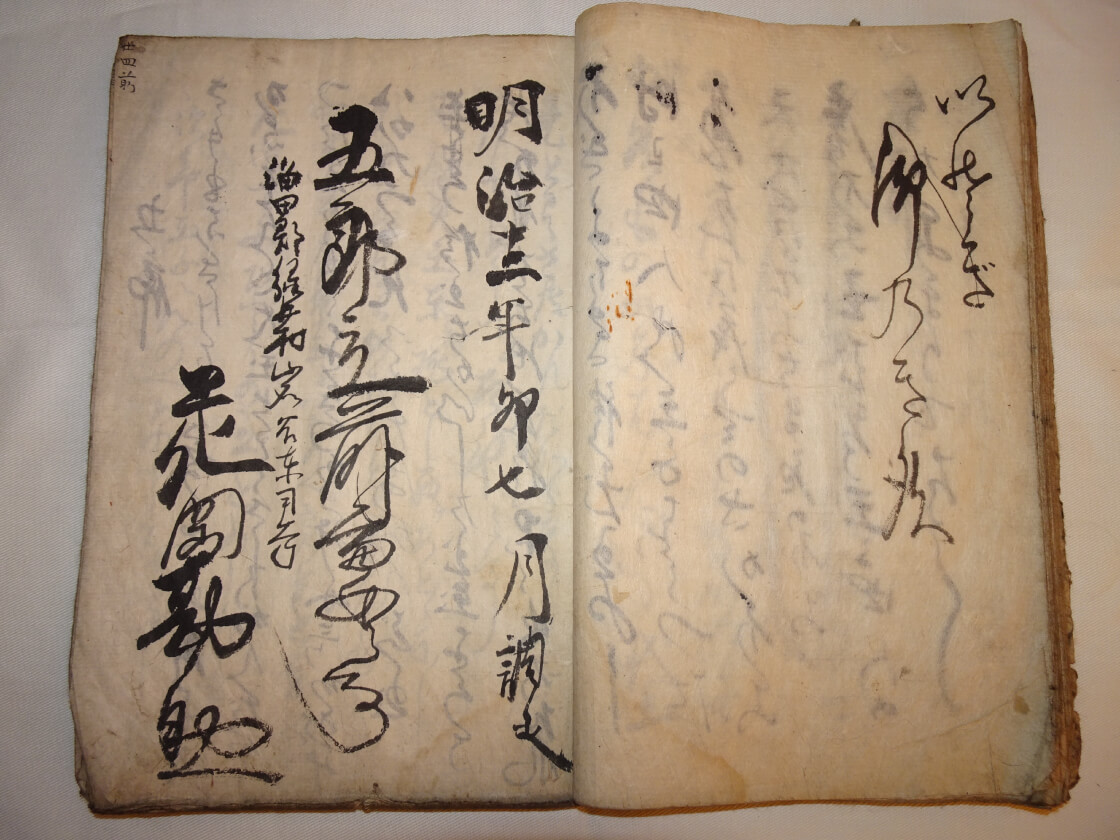 岩谷神楽は、私が物心ついた頃から既に祖父の代に伝わっており、その起源は明らかではなかったのですが、2020年に地域の家の蔵からちょっとした発見がありました。神楽の演目の一つ「五郎舞」の舞詞(まいことば)を記録した古い文書が出てきたのです。それに記された日付が「明治12年」だったので、少なくともその時代には存在していた証しとなりました。江戸時代末期には伝わっていたのかもしれません。